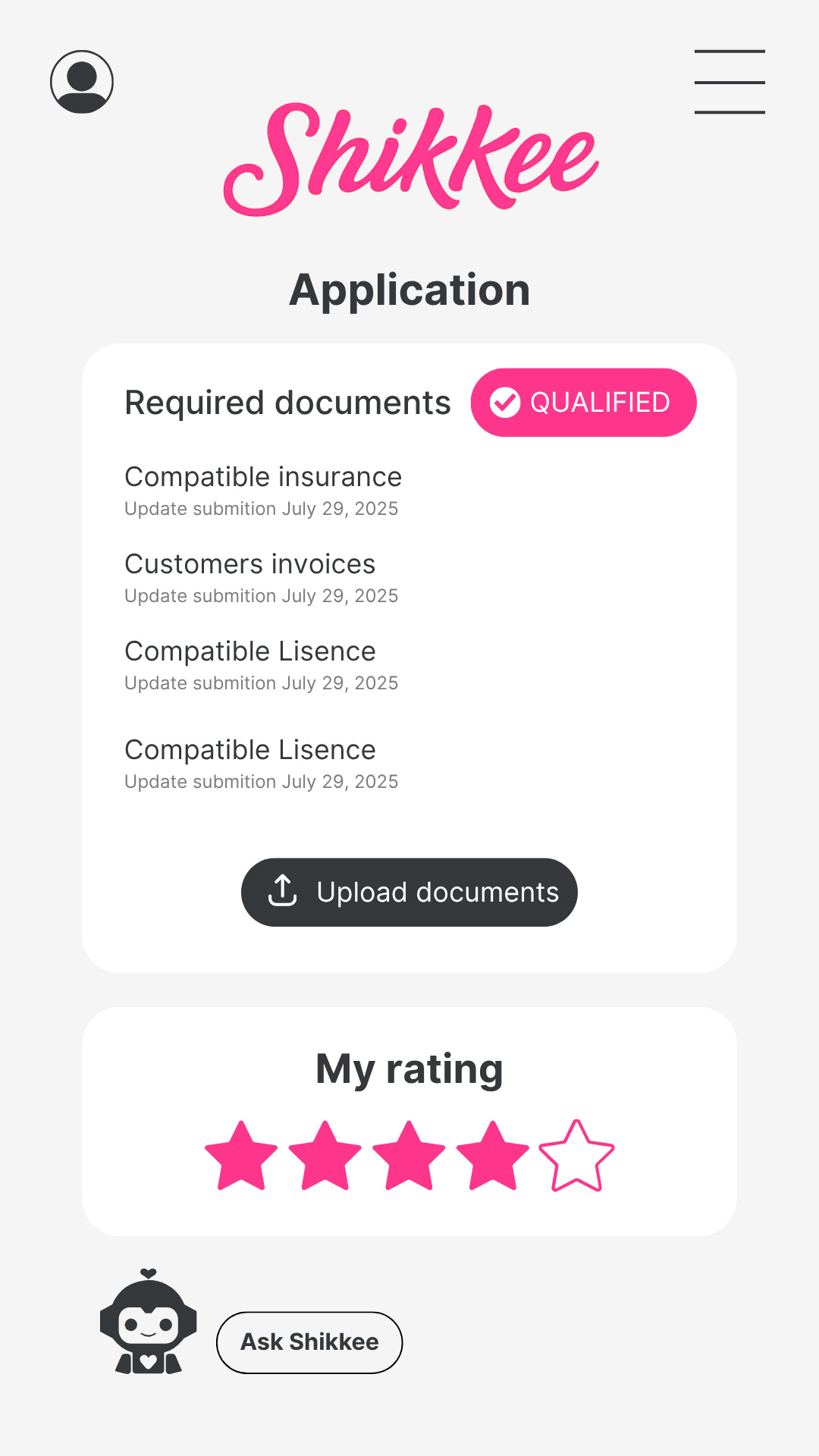 In this section you can upload all the required documents – licenses, insurance, work permits. Once everything is in order – you will see a green ‘Qualified’ indicator and your profile is ready to work.